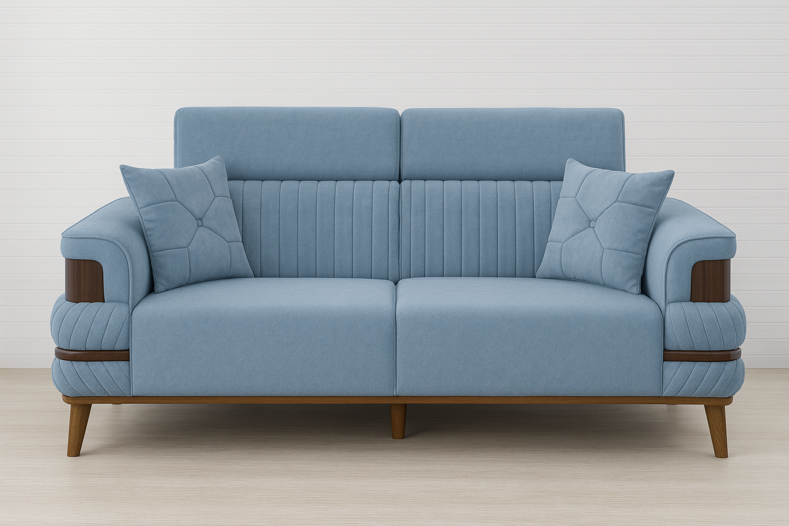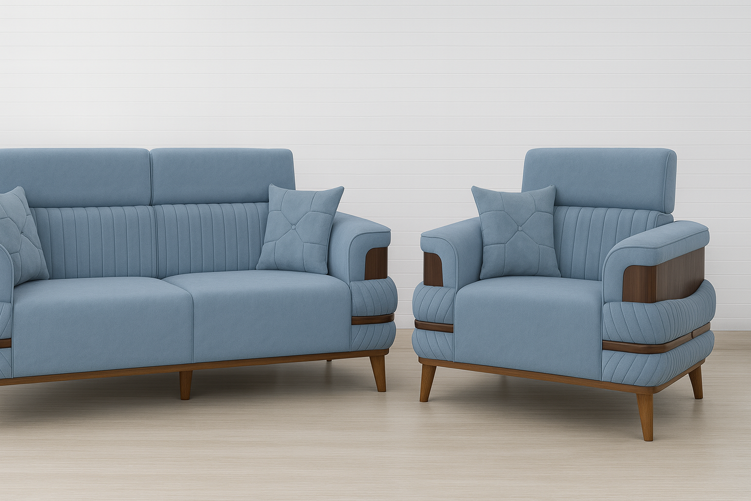 Bring home Elevate Aqua Luxe, a premium 3+2 sofa set in refreshing aqua-blue upholstery, blending modern elegance, plush comfort, and durable craftsmanship for the perfect living room centerpiece.