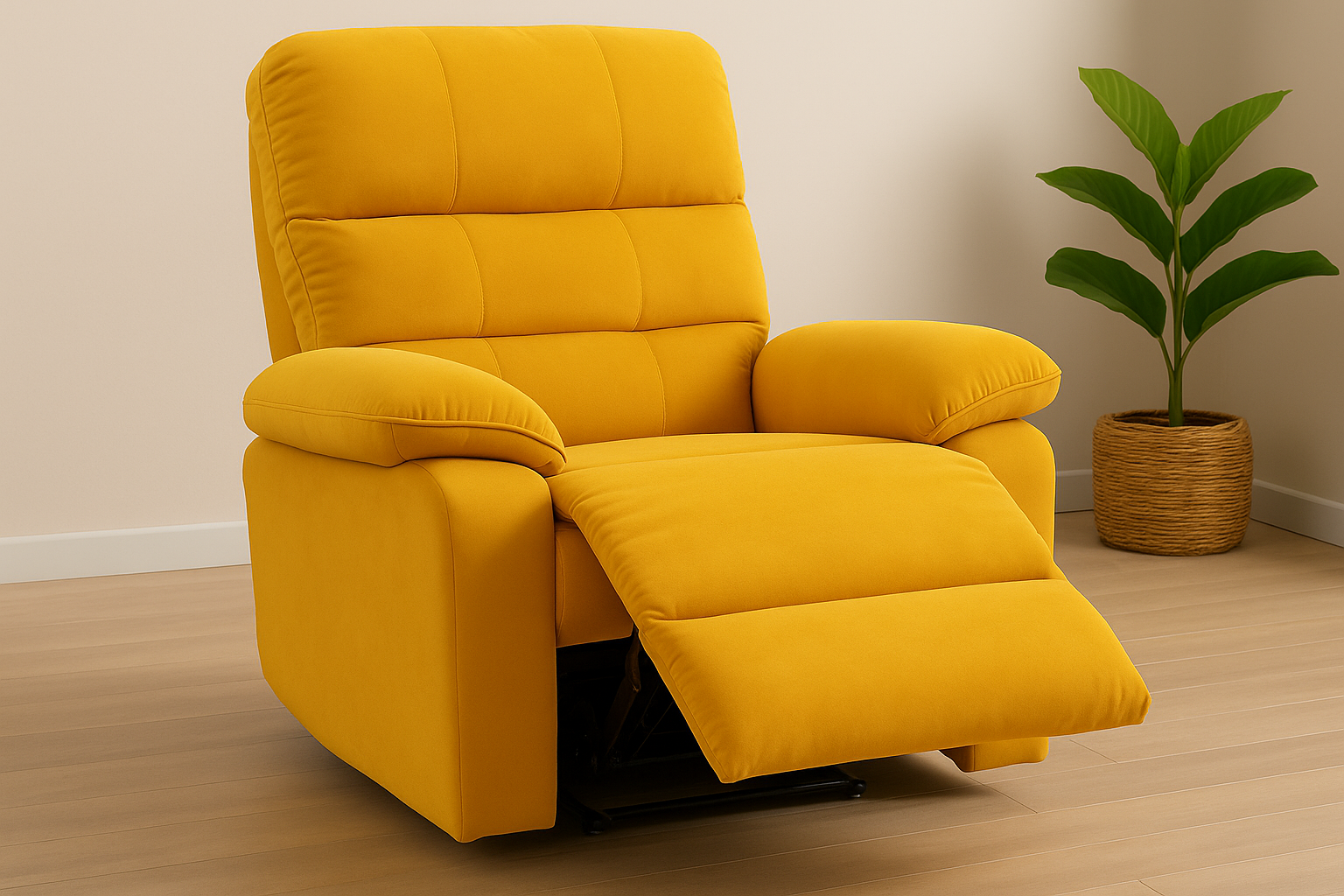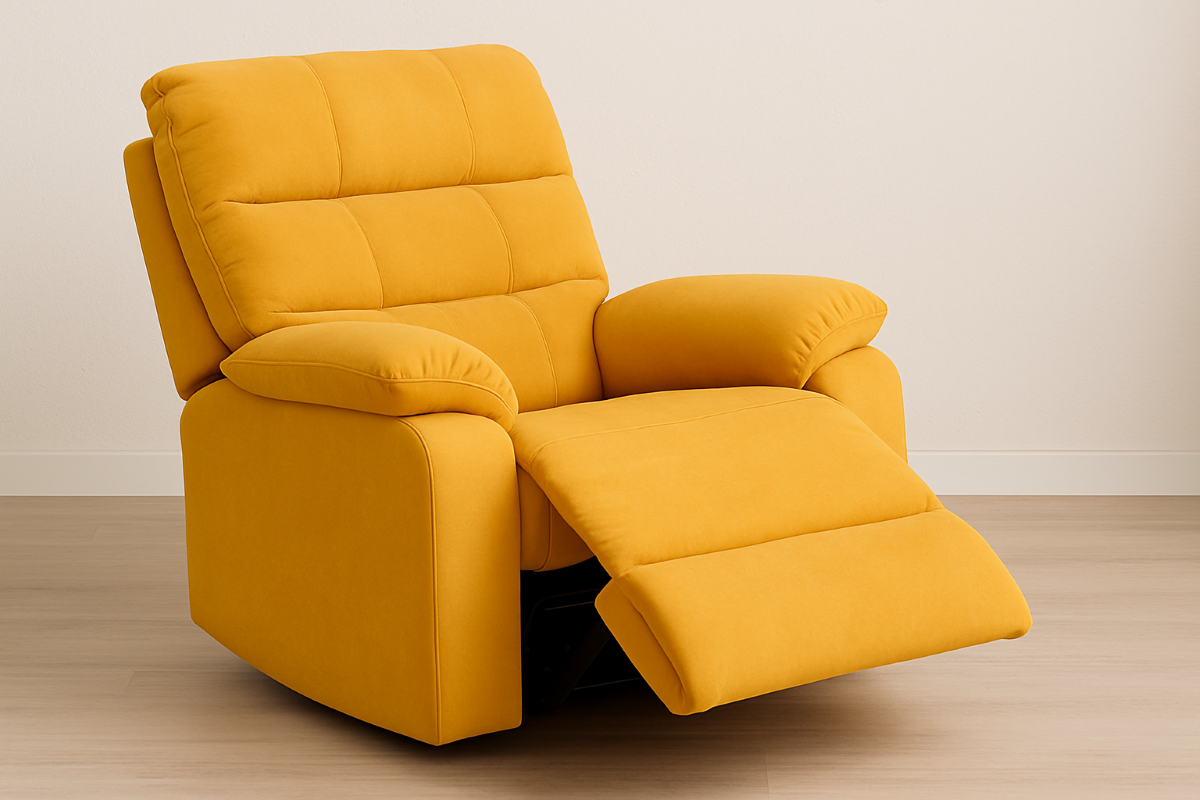 Bring sunshine into your space with the Elevate Marigold recliner — a bold blend of vibrant charm and everyday comfort. Upholstered in a rich marigold yellow fabric and crafted with deep, cloud-like cushioning, this recliner doesn’t just seat you — it embraces you.