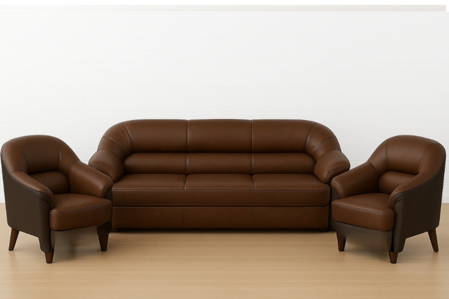The 3+1+1 configuration ensures the perfect balance of space and intimacy – a spacious 3-seater for family gatherings paired with two cozy single-seaters for personal comfort. Built on a durable frame and upholstered in premium leatherette, Elevate Mocha combines timeless aesthetics with long-lasting strength.