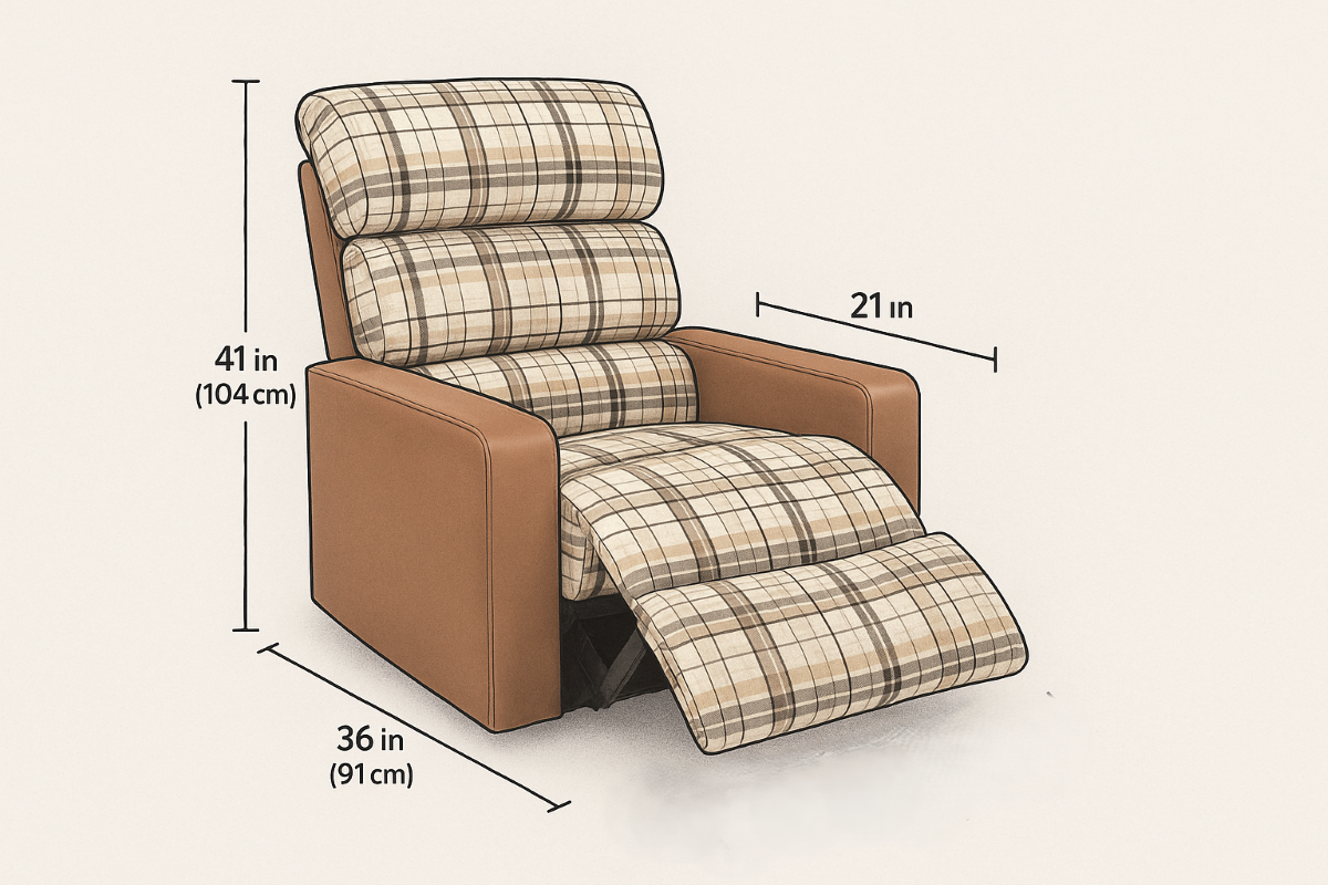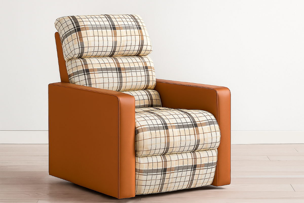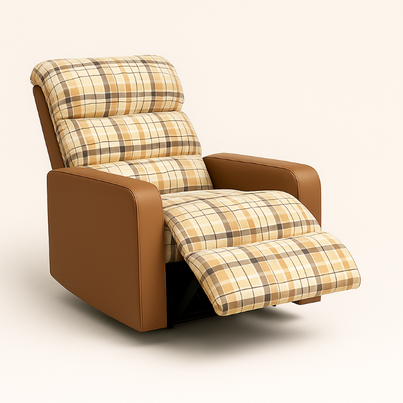 Inspired by the earthy tones and textures of nature, the Elevate Timber recliner blends rustic charm with everyday functionality. Wrapped in a cozy plaid fabric and paired with rich, faux-leather brown armrests, Timber is a celebration of comfort and classic design — perfect for both modern cabins and urban living rooms.
