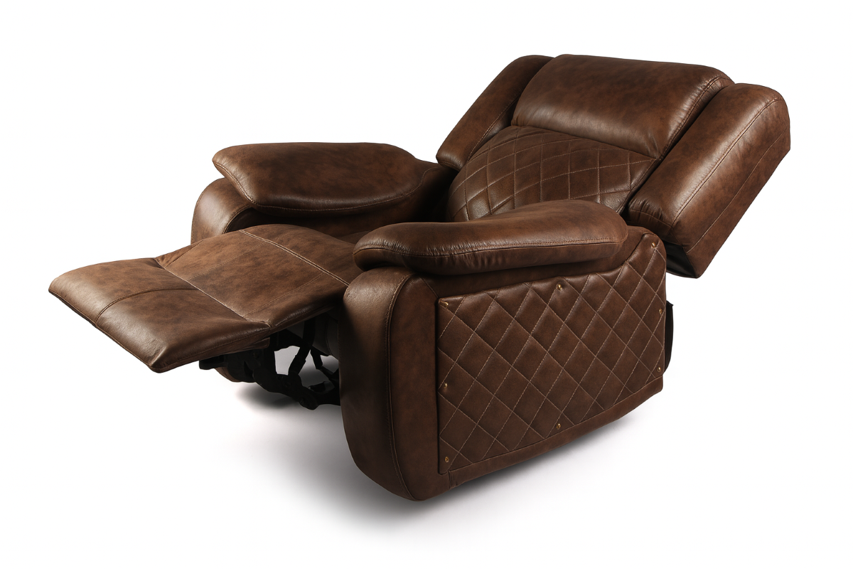 Transform your space with The Diamond Retreat, a brown recliner designed for ultimate relaxation and timeless elegance. The intricate diamond pattern on the backrest and sides below the armrests creates a refined aesthetic, while the plush cushioning ensures every moment spent in this recliner feels like a luxurious escape.